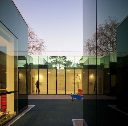 pátio exterior, o ginásio, os balneários, as cozinhas (industrial e pedagógica para atividades com as crianças) e o refeitório